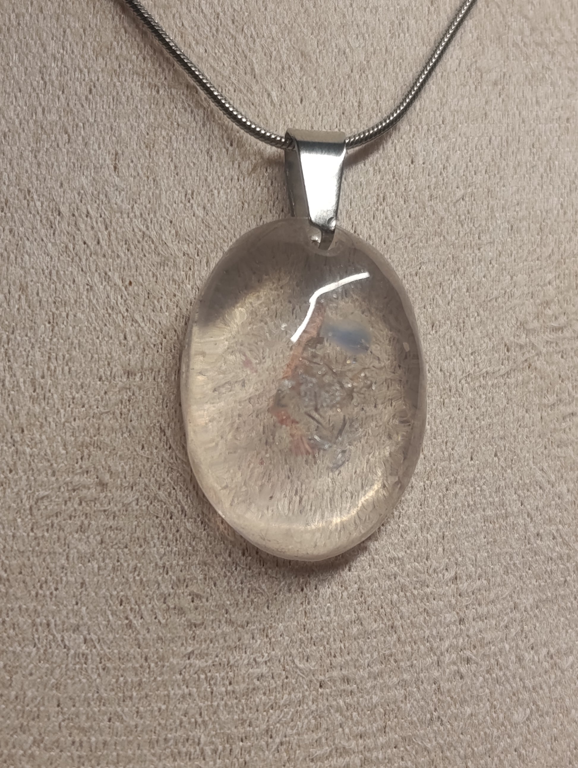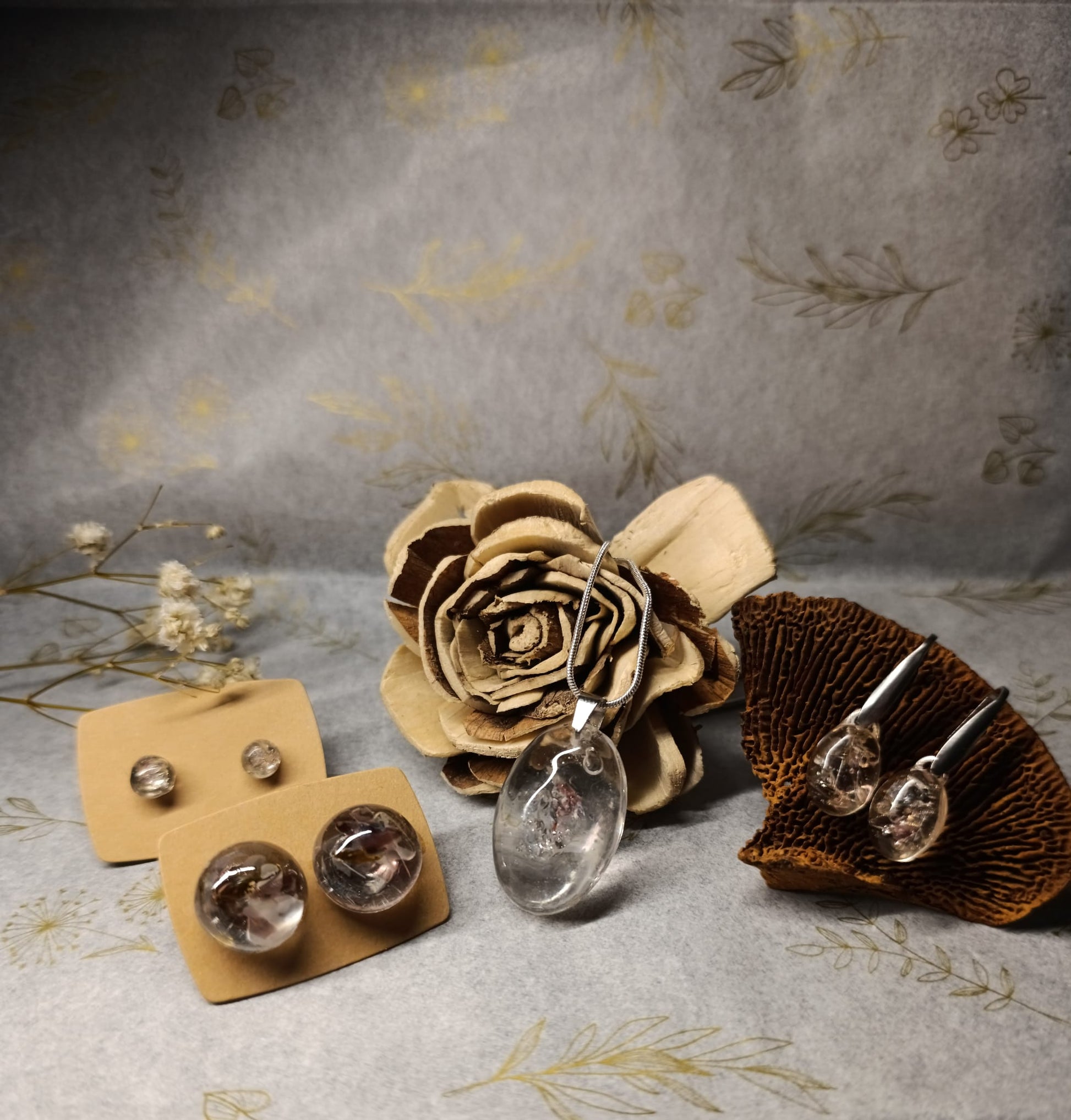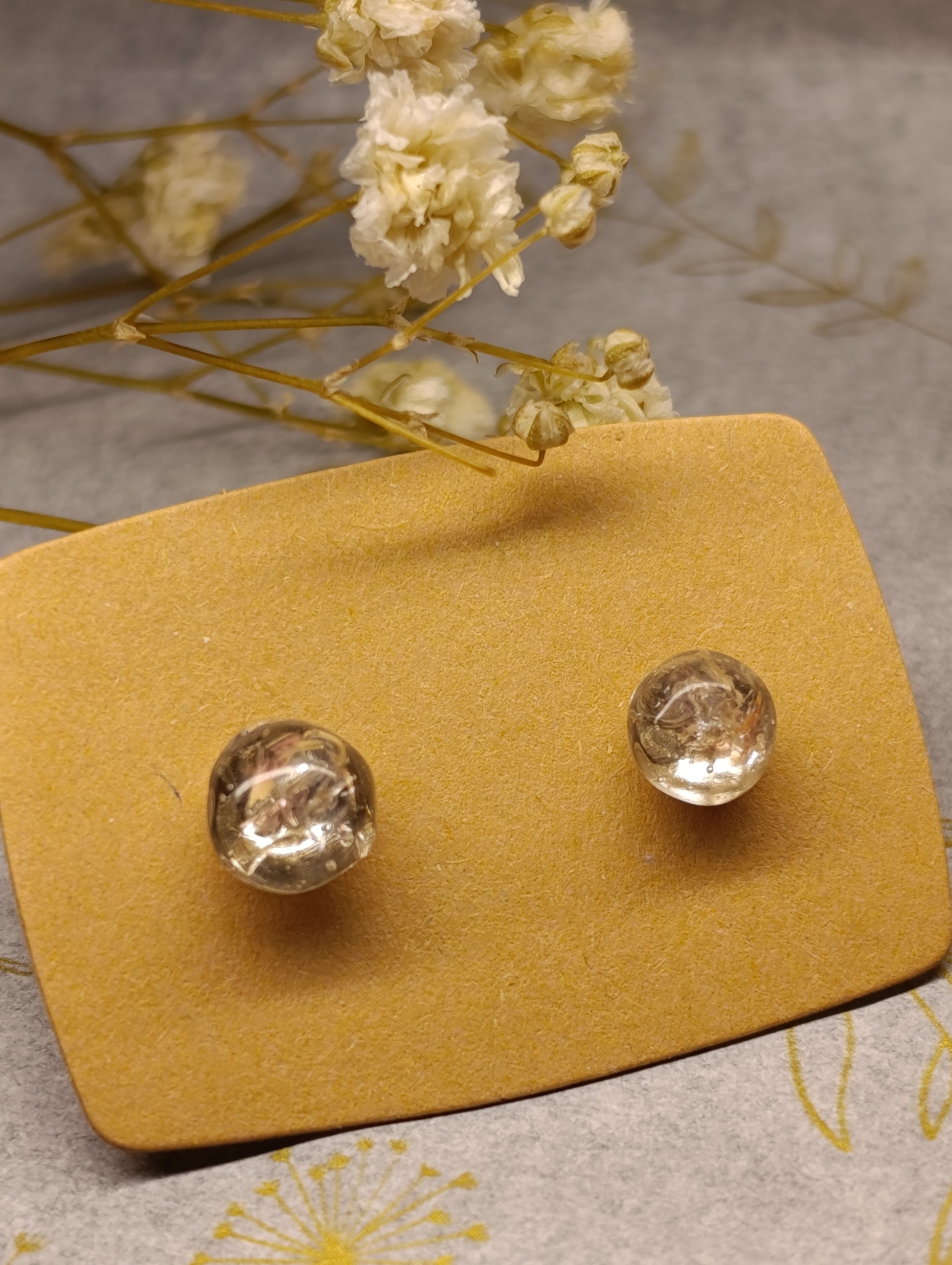 Cada joya preserva diminutos fragmentos de vidrio reciclado en una semi-esfera de resina pura y cristalina. La resina transparente actúa como una lupa, invitándote a descubrir la belleza oculta en los detalles más pequeños, como si observaras a través de una gota de lluvia en una ventana.