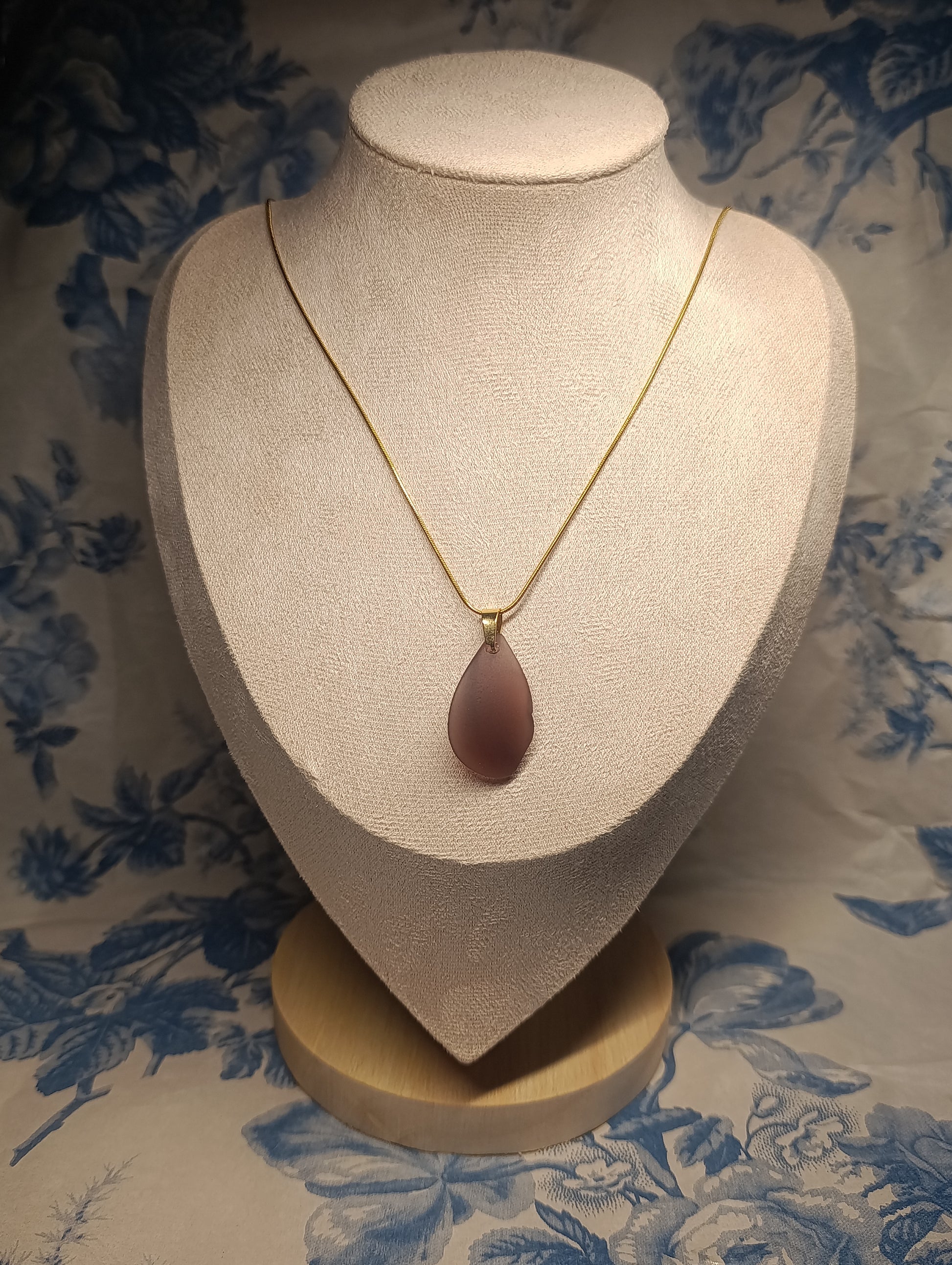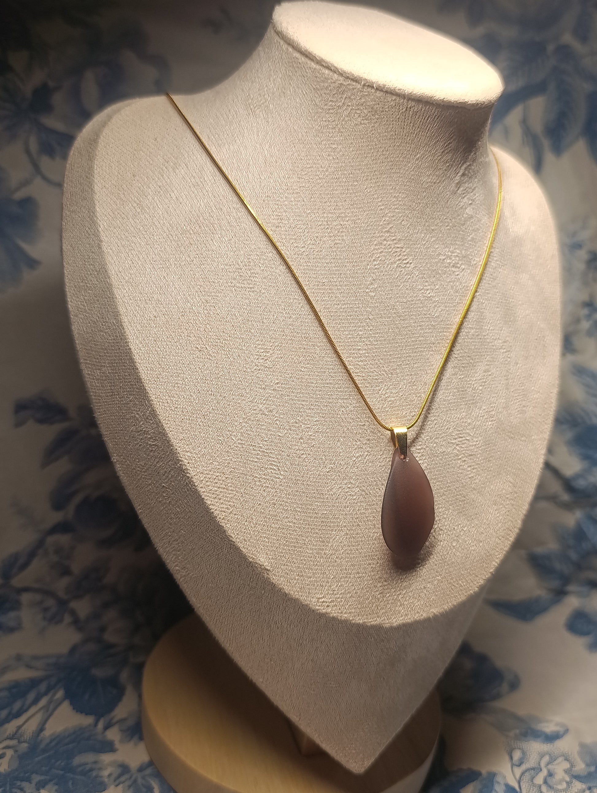 Vidrio burdeos pulido con cadena dorada de acero inoxidable.