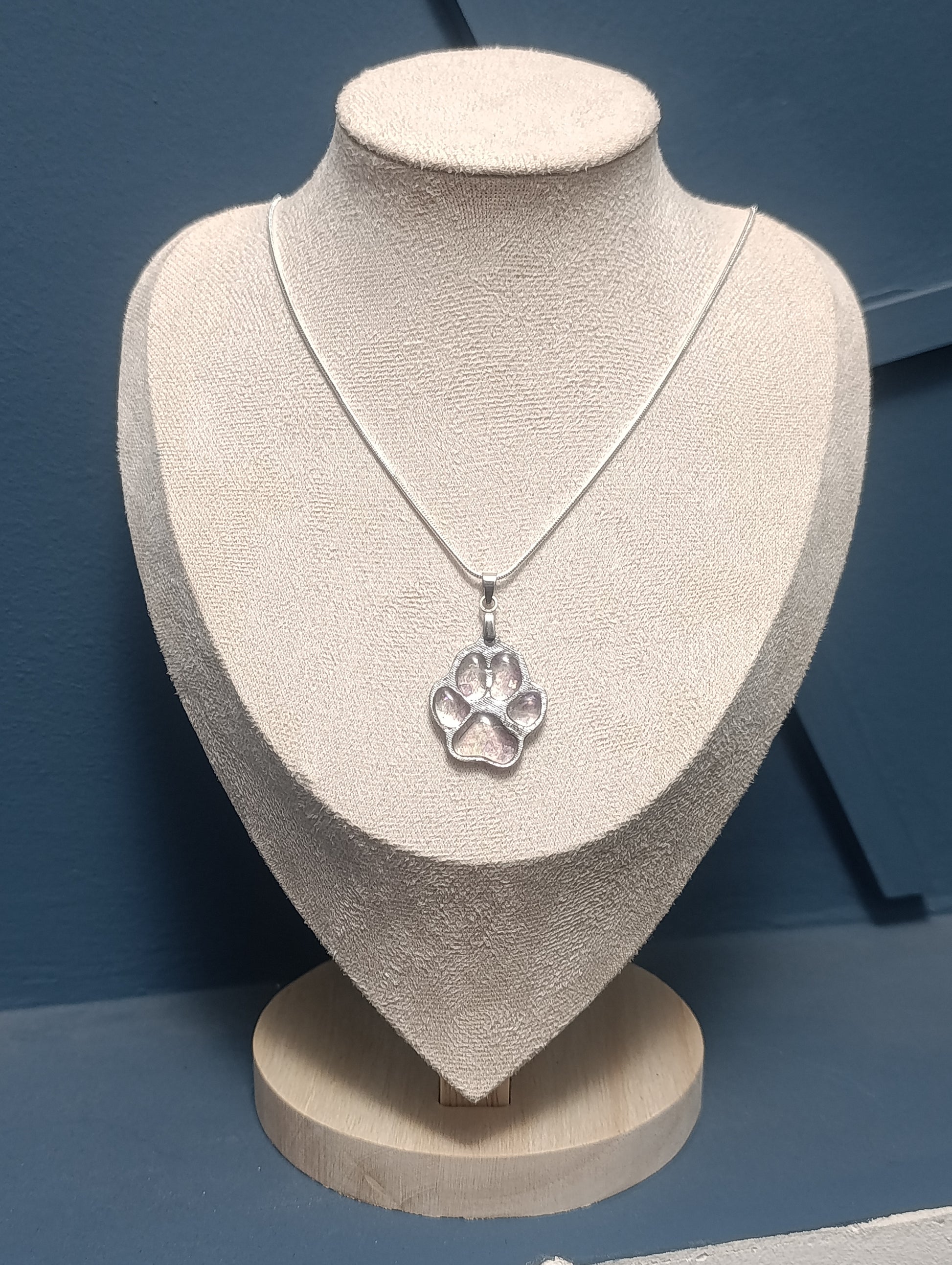 PERSONALIZADO: la forma de la huella de tu mascota y quieres encapsular algún recuerdo de tu mascota dentro de su huella (pelo, cenizas)