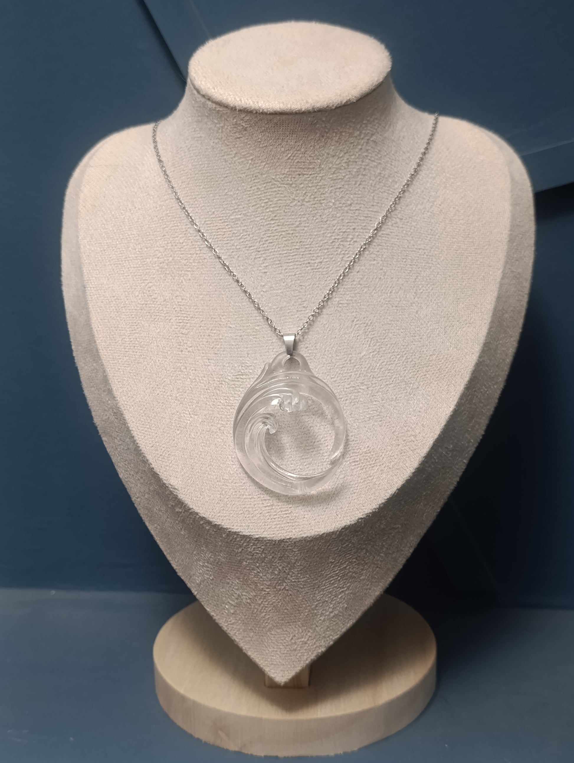 Está hecho de resina totalmente transparente, lo que hace que parezca agua cristalina. Al no tener color, es una pieza versátil que combina absolutamente con todo.