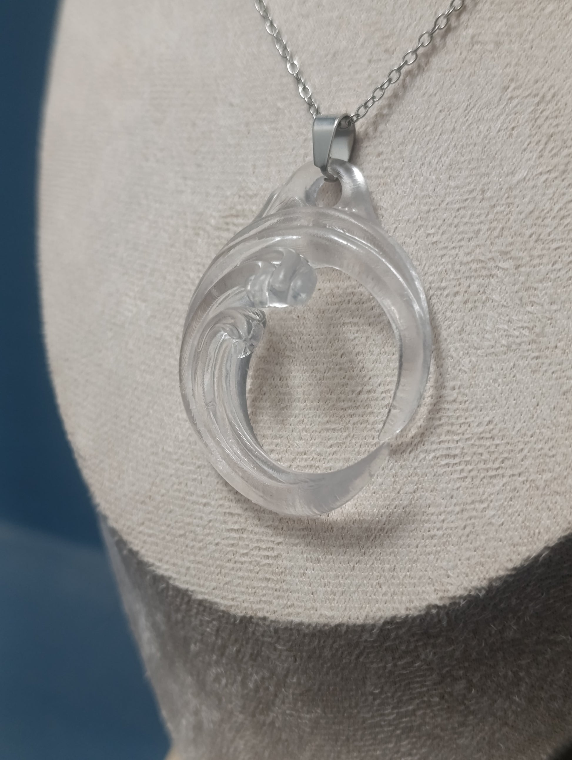 Un toque marino, sencillo y para todos los días. Este colgante captura la forma de una pequeña ola dentro de una forma circular.