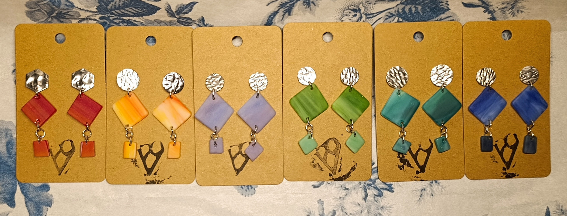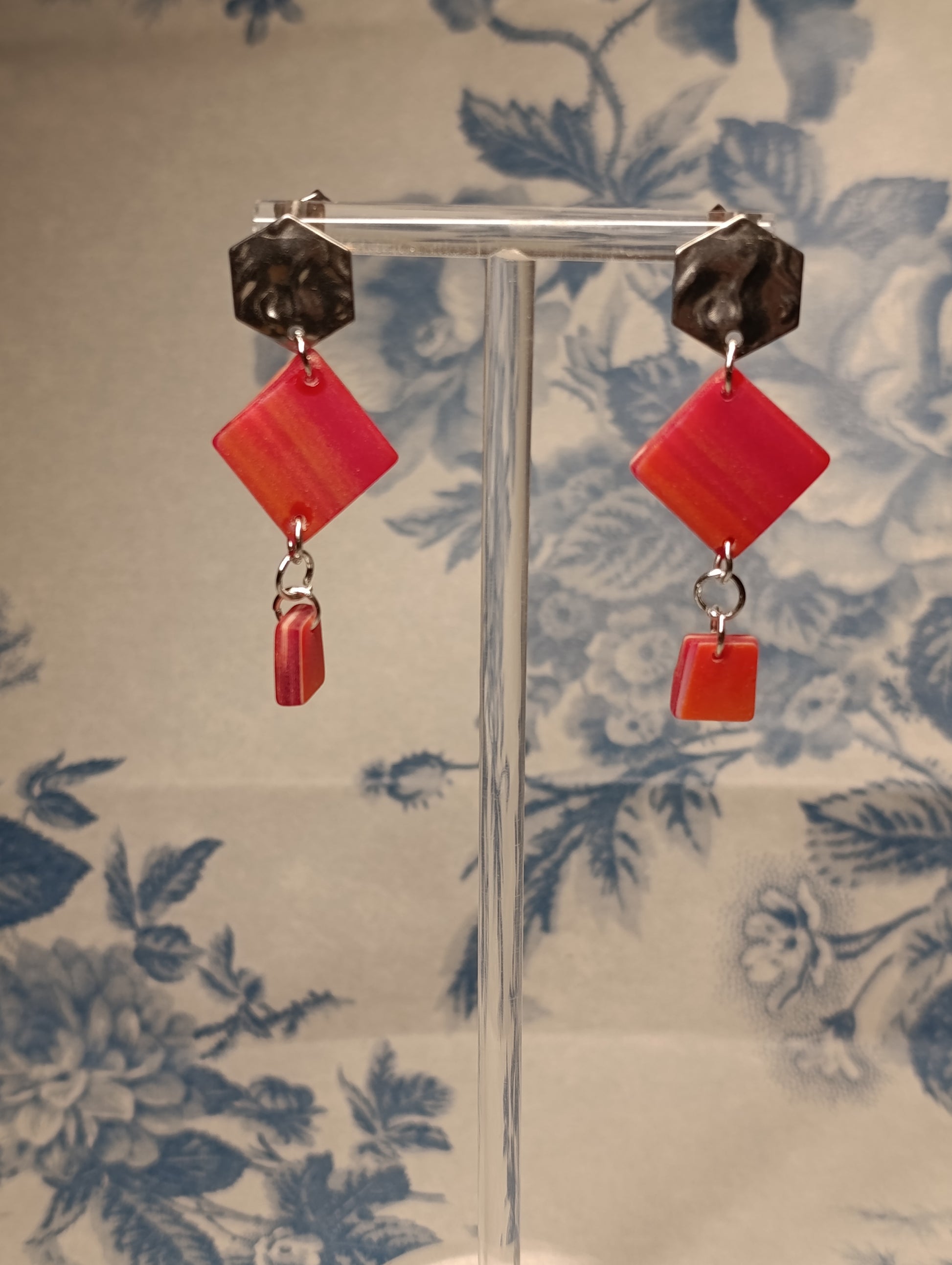 Pendientes de vidrio pulido en forma de rombo de dos piezas con caída.